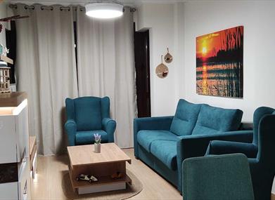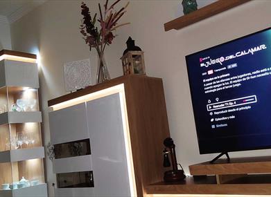 El Juncal Apartment is located in Cabra, next to the Subbéticas mountain ranges. Set in an idyllic location in front of the Condes de Cabra Castle and the Church of Nuestra Señora de la Asunción y Ángeles, known as the Mosque of the Baroque. Brand new apartment, very bright, three rooms, two bedrooms (one with a double bed and the other with a bunk bed with a 135 cm lower bed); living room with sofa bed, two full bathrooms, separate kitchen, double glazed windows, aluminium blinds, safe, free WiFi, 55-inch TV (Netflix, HBO, Amazon Prime Video and Movistar), air conditioning/heating throughout the apartment.