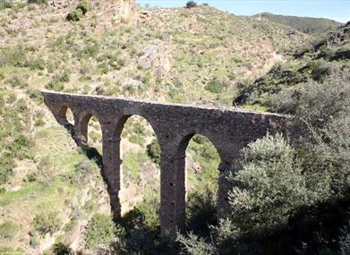 Este Acueducto Romano de Albánchez situado a unos kilómetros de Albánchez, se compone de cinco arcos emplazados a más de veinte metros del cauce de la rambla, hecho que ha favorecido su conservación, ya que ha impedido que las crecidas de los ríos tan normales en estos parajes lo dañaran. Frente a la solidez de sus pilares, los enclaves de la obra en la ladera del barranco han cedido y obligado a la realización de diferentes restauraciones que afectan a los arcos laterales, sobre todo al oeste, y al central de 7 metros de luz derrumbado en tiempos pasados y recientemente restaurado.
