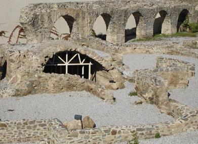 The last part, in the city, goes to the old quarter and is called La Carrera. Next to it, a major water complex has been documented, comprised of baths and a series of room structures dated back to the last quarter of the 1st century AD The baths are made up of several pools, with both hot and cold water, with the ruins of the hypocaust and the oven, along with a network of pipes made of lead (they are buried for conservation).