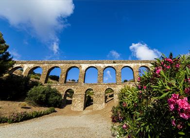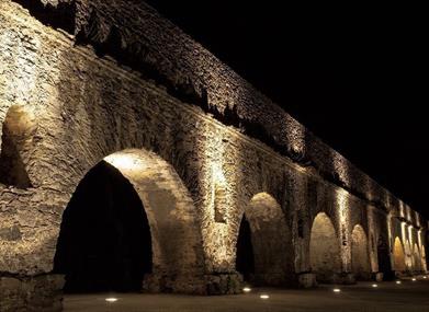 In Almuñecar, the aqueduct and Roman baths bear witness to a majestic work that, in olden times, captured water and brought it into the city. The waterworks begin in the area known as Las Angosturas, at the Verde river, where the water intake has been documented: a vaulted canal with a length of approximately 500 metres.