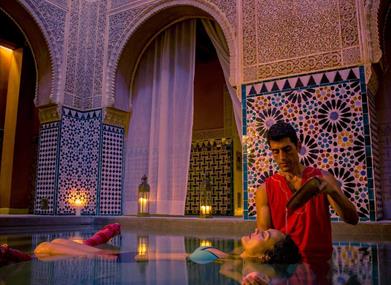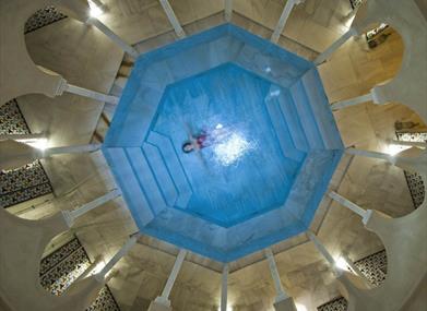 The stunning decor at Hammam Al Andalus (Málaga) remains true to Nasrid tradition, especially the coffered ceilings, arches, murals and mosaics, the beautiful skylights and delicate latticework, as well as an impressive vaulted ceiling which, supported by arches and columns, crowns the Central Bath.