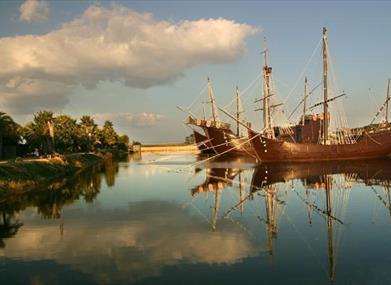 In the Muelle de las Carabelas Museum (Caravel Dock Museum) are reproductions of La Niña, La Pinta and La Santa María which were built in 1992 to celebrate the 5th Centenary of the Discovery of America. It gets its name from the Muelle de las Carabelas., or the Caravel Dock.