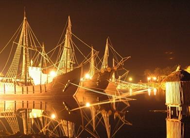 Besides the replicas of the boats, which are its main attraction, the Muelle de las Carabelas Museum has a visitor centre, the medieval quarter (recreated around the dock) and the Island of Encuentro, which attempts to recreate the indigenous culture of the island of Guanahani, the first island where Christopher Columbus disembarked on the 12th of October 1492, and which he named San Salvador.