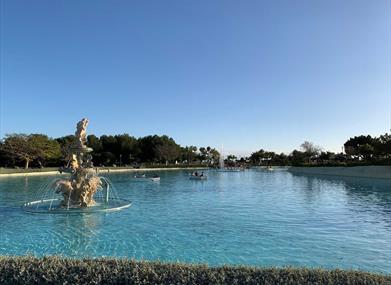 There is also an artificial lake with over 9,000 square metres, where you can hire a boat, and a magnificent, classical, Venetian style merry-go-round with almost 50 figures of giraffes, ponies, floats and little houses for the delight of children. There is also a 15m high lookout tower, a network of pathways, a physical exercise area, a bike lane, a jogging trail and a large children's play area.