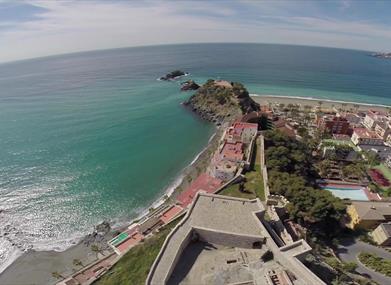 The type of rock outcrops found here, at Punta de San Cristóbal, are not common on the Mediterranean coast. These three crags are composed of hard, dark-coloured rock. They are located right in the town of Almuñécar and push out into the sea, as if they wanted to part its waters.
