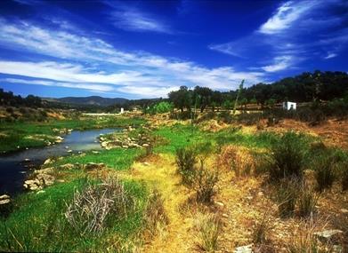 Thus, we see a wide range of rocks, from granite stones and boulders of the batholith of El Pedroso, to a great many shapes of limestone origin: polje of Los Llanos de San Sebastian (Cazalla de la Sierra), the stunning natural limestone monument of Cerro del Hierro or the peaks of Constantina (San Nicolás del Puerto) and los Coscojales (Alanís). Other geographic formations of major importance are the natural monument of Cascadas del Huéznar, the Cambrian Medusas of Piedra Escrita (Cazalla de la Sierra) or the fossil trunks of the permian basin of the Viar River.