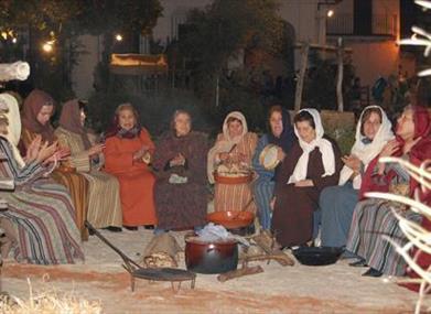 Between 5.30 to 11.30 pm on Saturday, all the streets in the town will be bedecked with palm trees. Most of them will also be illuminated by the soft light of torches, adding the evocative scent of burning wax to this inviting atmosphere, and making a visit to the Live Nativity even more special.